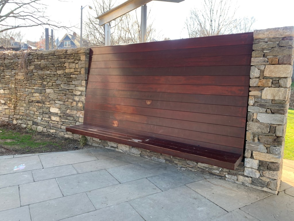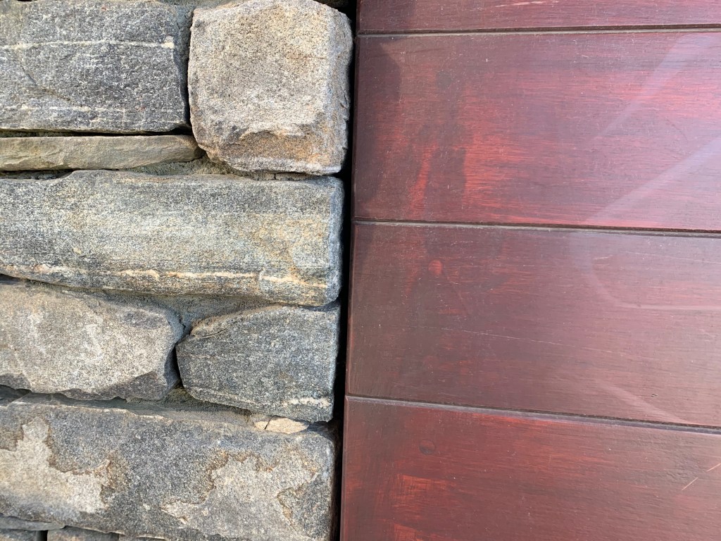 My first conclusion was that the bench was separated from the fieldstone around it. But my family convinced me that, since the stone supports the bench, the two are one thing. Quote from my Dad: “Without the stone, what would the bench be?”